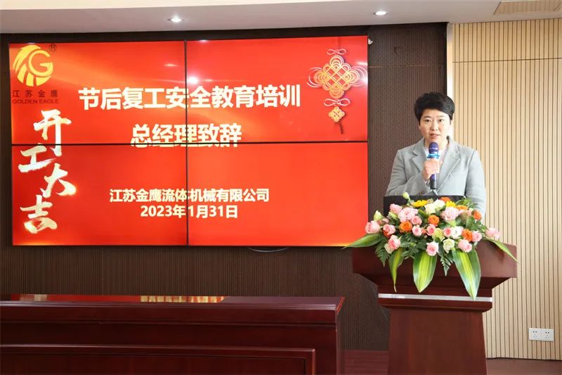 在會議上總經(jīng)理作復工動員致辭,童總經(jīng)理代表公司向在過去一年辛苦付出的金鷹人送去新年的祝福,并強調(diào)了快速全面復工的重要性、迫切性、責任性,保證人到崗、心在崗,馬上行動,身心一致地投入各項工作中。